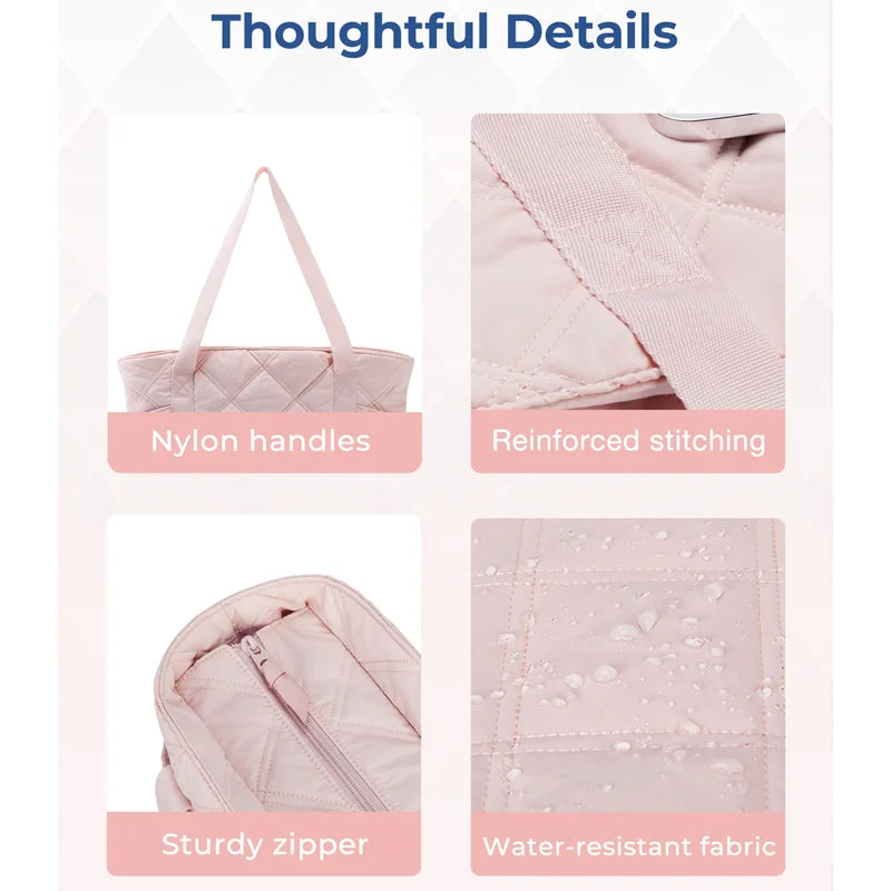 The Mimisara Lume Tote Bag is designed to carry your everyday essentials with ease and style. No more bulky bags, uncomfortable straps, or juggling multiple totes throughout the day. Its lightweight, padded design offers a soft yet structured feel that stays comfortable even during long hours of use.